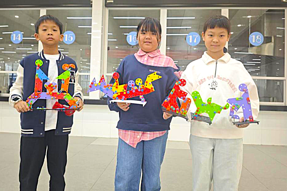 肇庆市高要区第二中学星科学校的小宪(化名)与父母共同参赛,小宪的爸爸坦言:“备赛过程中和孩子交流增多了,亲子关系更融洽了。”在场外等候孩子的李先生对孩子的作品倍感惊喜:“没想到孩子能把七巧板玩出这么多新花样,不仅锻炼了想象力,还学会了和同伴合作,希望明年还能参加。”