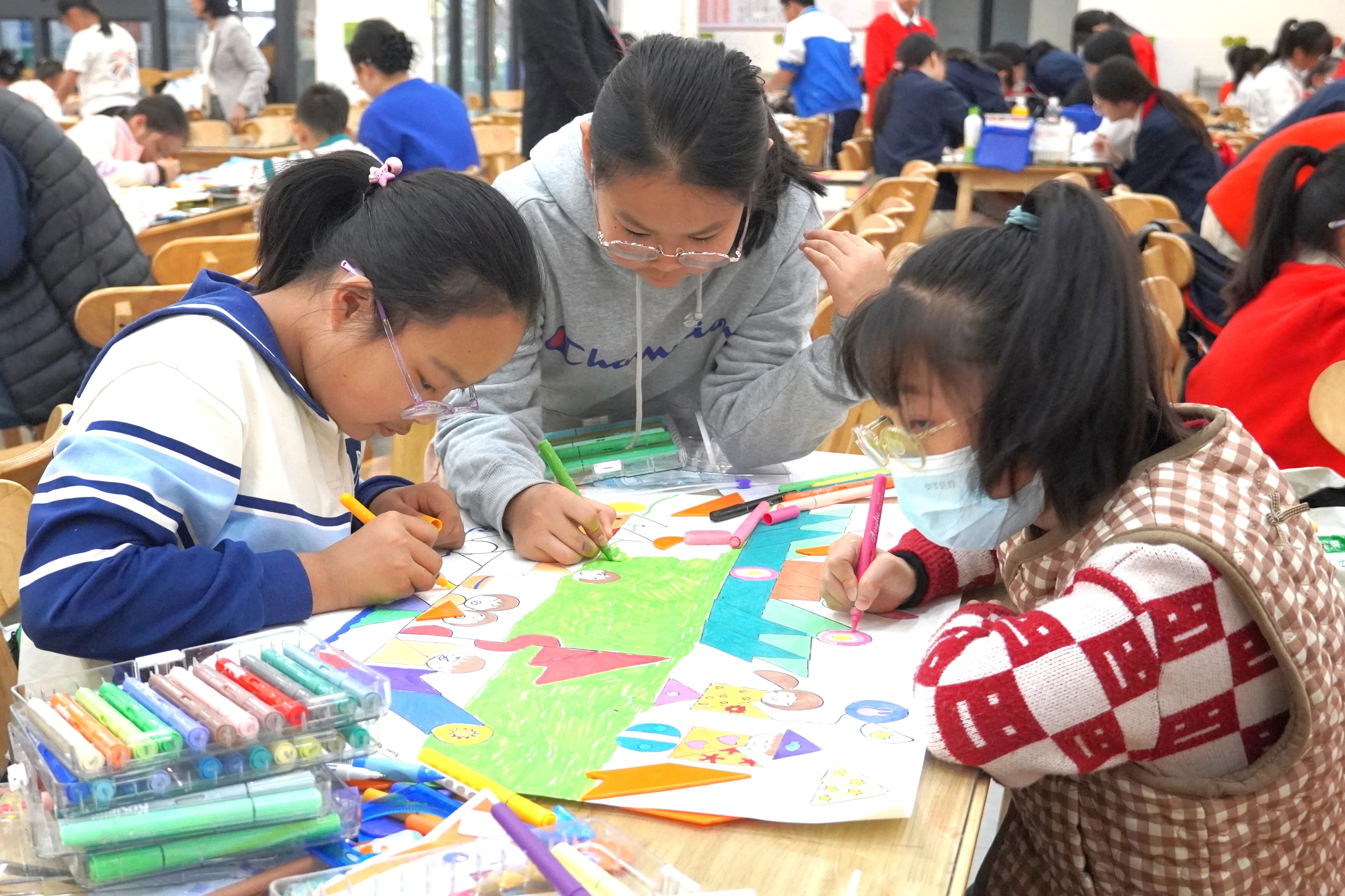 活动设置了多副主题团体绘画项目、“组合分解与创新”个人项目以及七巧板立体拼搭创作项目。活动现场,同学们兴高采烈,运用七巧板进行创意组拼,紧密围绕着“我爱中华优秀传统文化”主题开展创作。参加个人赛的同学们认真答题完成七巧板的各种组合,参加团体赛的同学们聚精会神开动脑筋全神贯注投入创作,家长陪同小学生共同参与活动配合默契。从传统节日到非物质文化遗产,从非遗元素到民俗故事,各类蕴含文化底蕴与时代精神的意象成为创作的核心内容。选手们将七巧板的几何智慧与传统文化的精神内核巧妙融合,在方寸之间搭建起文化传承的桥梁。