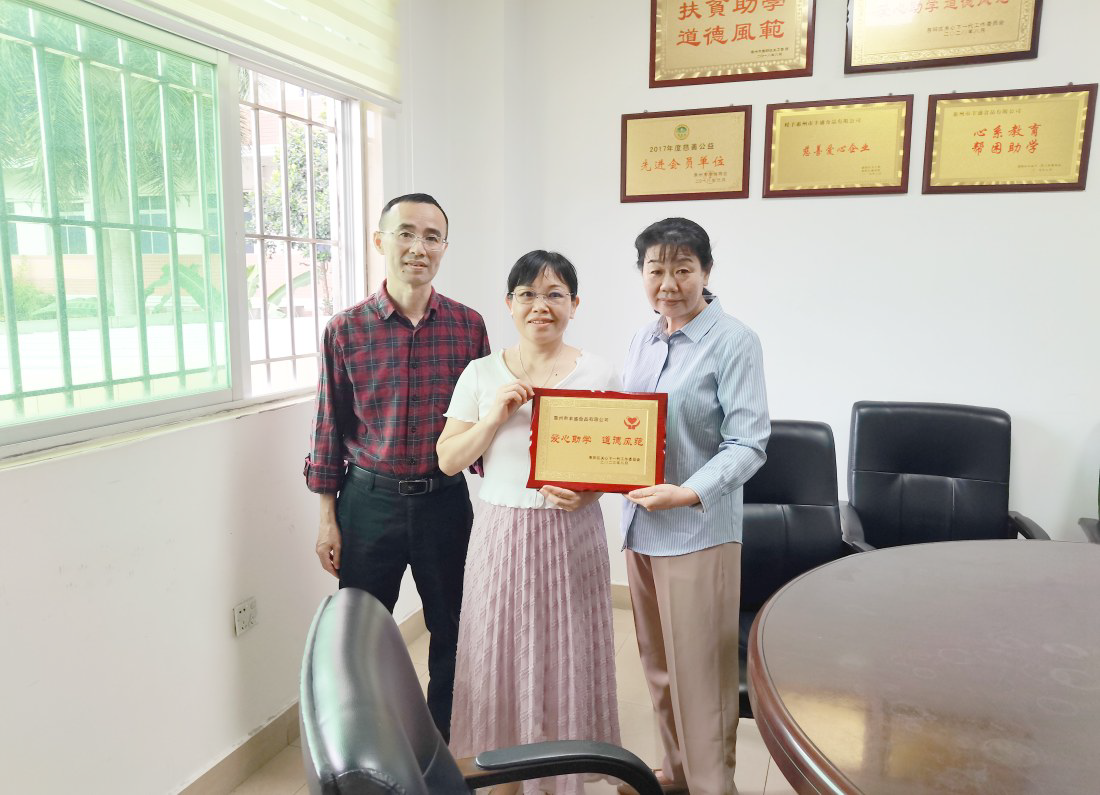 为了让捐资助学更加稳定,朱蔼萍提议成立关工委顾问团,向相关热心人士发出聘书,经常与顾问团成员沟通交流。在此基础上,她又顺势提议成立企业关工委。惠州市伯恩光学有限公司、惠州市湘联金属制品有限公司、南方眼镜集团三家企业相继成立关工委。