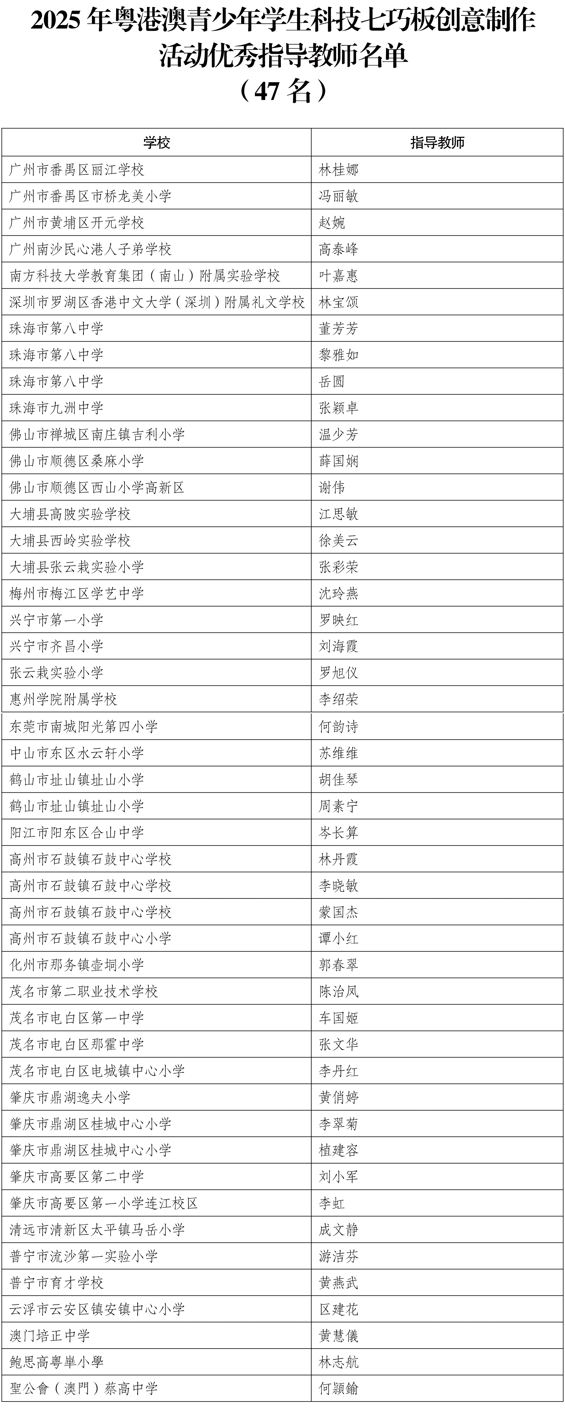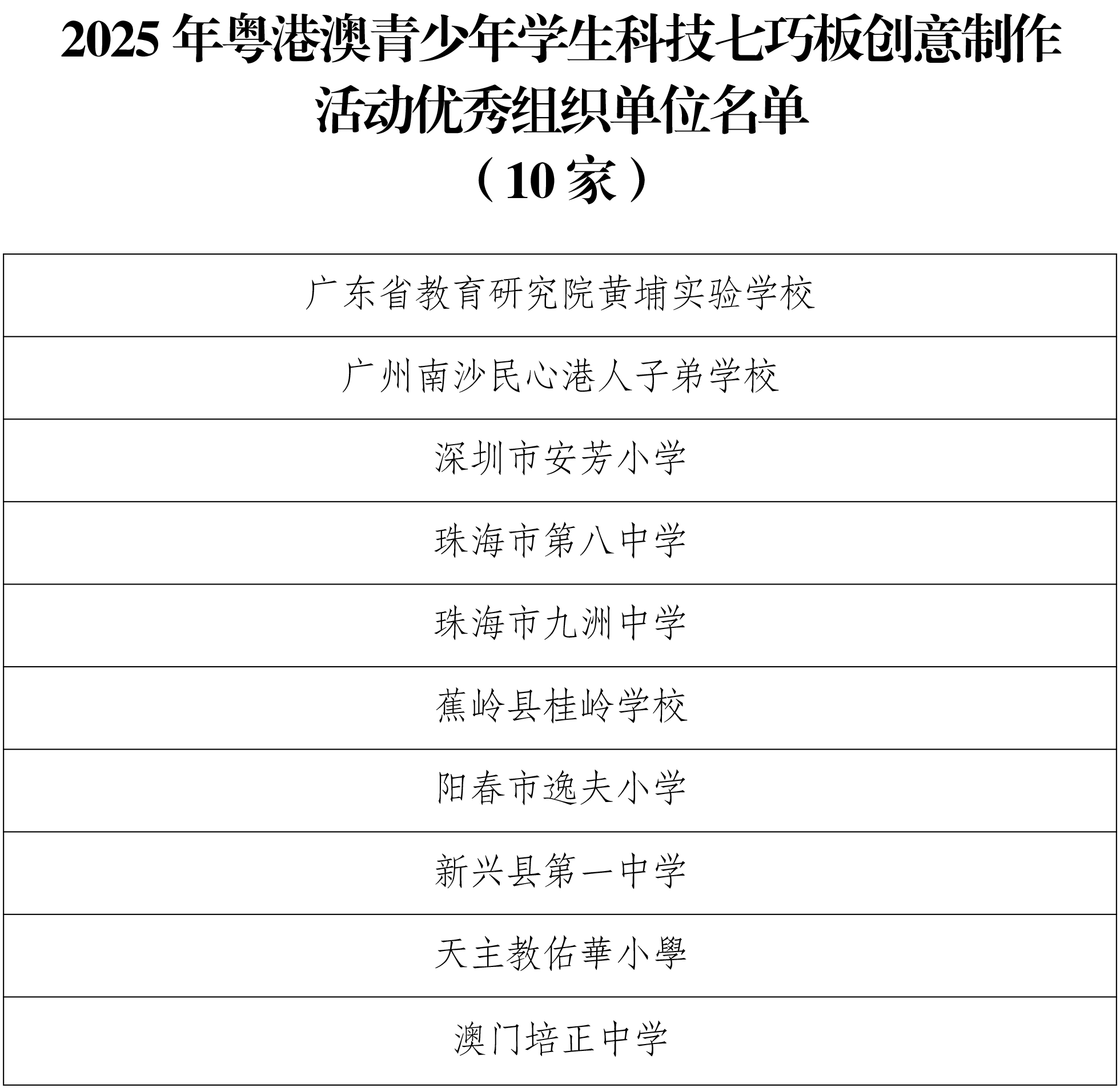 希望获奖的单位和个人珍惜荣誉、再接再厉,积极参加更多的科技创新和科普实践活动,在更广阔的舞台上充分展现粤港澳青少年学子的蓬勃朝气与时代风采;希望各参与单位以先进为榜样,精心组织、扎实推进2026年粤港澳青少年学生科技七巧板创意制作活动,着力激发青少年的创新潜能,厚植科学素养,为培养德智体美劳全面发展的社会主义建设者和接班人作出新的更大贡献!